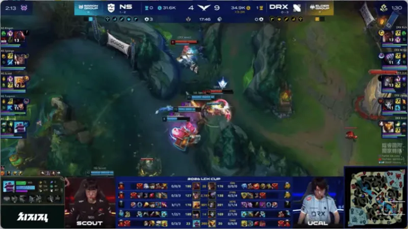 12分钟,两边河道混战,DRX打出2换4大获全胜