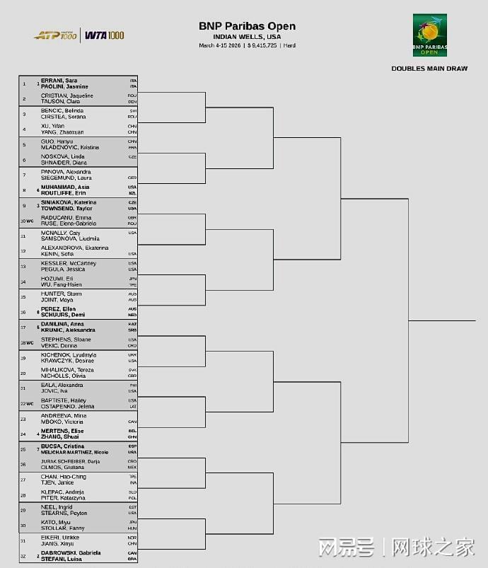 另外,在昨天公布的WTA1000印第安维尔斯站双打签表中,有五朵中国金花出战。她们的首轮对阵如下:张帅/梅尔滕斯 vs 安德列娃/姆博科、徐一璠/杨钊煊 vs 本西奇/科斯蒂亚、郭涵煜/穆拉德诺维奇 vs 诺斯科娃/施耐德、蒋欣玗/艾克里 vs 达布劳斯基/史蒂芬妮。